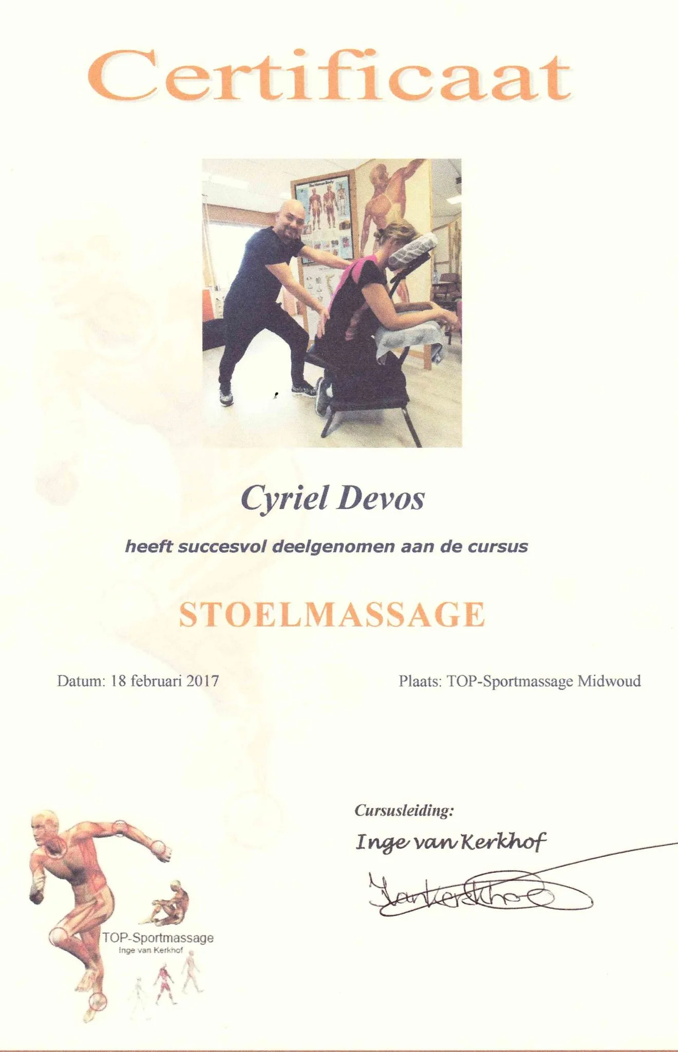 Certificaat stoelmassage